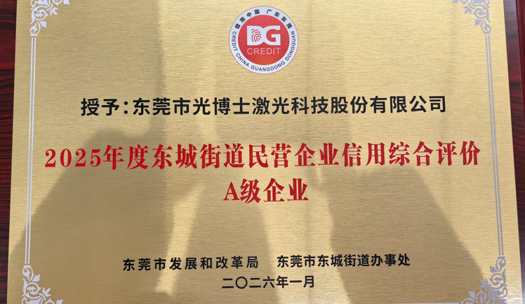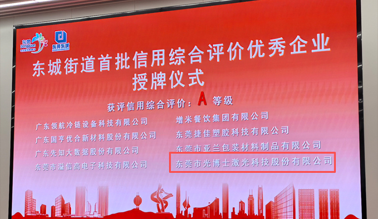 本次信用綜合評價圍繞企業經營狀況、財務實力、創新能力、人力資源等多個維度制定指標體系,通過企業自主申報、第三方機構實地核驗、專家評審等環節,最終評選出信用達標的多家企業。東莞市光博士激光科技股份有限公司憑借卓越的綜合實力和良好的信用記錄,在評選中脫穎而出,獲評A級評選。