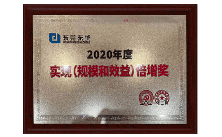 2021年3月5日,東莞東城“2020年度工作總結表彰大會”。榮獲“2020規模效益倍增器”三等獎。 2017年以來,東莞市政府大力推進“倍