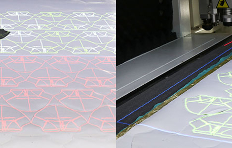 A、排版投射至工作臺實時預(yù)覽。B、軟件界面預(yù)覽C、不同顏色展示已切和待切區(qū)域。D、輔助對位線功能讓您實時掌控材料最佳切割位置。